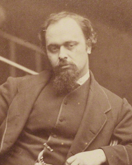 Dante Gabriel Charles Rossetti was een Britse schilder, dichter, illustrator en vertaler. Zijn oorsprong gaat terug naar de Italiaanse adellijke familie Rossetti. Terwijl hij binnen zijn familie en onder vrienden vaak met de voornaam Gabriël werd aangesproken, gaf hij in het openbaar de voorkeur aan de voornaam Dante, als verwijzing naar de beroemde dichter Dante. Aangezien zijn vader professor was aan het King's College, kreeg Rossetti daar zijn basisopleiding. Lange tijd kon hij niet beslissen of hij dichter of schilder wilde worden. Want net als zijn vader werden ook zijn drie broers en zussen gerespecteerde schrijvers. Rossetti toonde echter grote belangstelling voor de middeleeuwse Italiaanse kunst, dus schreef hij zich op 14-jarige leeftijd in bij Sass' Tekenschool, die als springplank zou dienen voor zijn toelating tot de Koninklijke Academie.