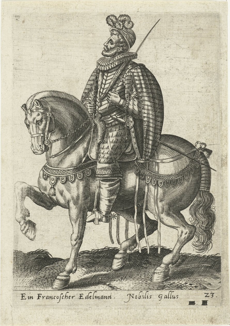 Franse edelman te paard(French Nobleman on Horseback)Abraham de Bruyn (attributed to)(print maker),Caspar Rutz (possibly)(publisher) |