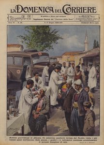 Bij Genazzano (Rome), een meisje dat plotseling van haar moeder wegliep om over te steken...(Presso Genazzano (Roma), una bimba staccatasi allimprovviso dalla madre per attraversare ? )Achille Beltrame |