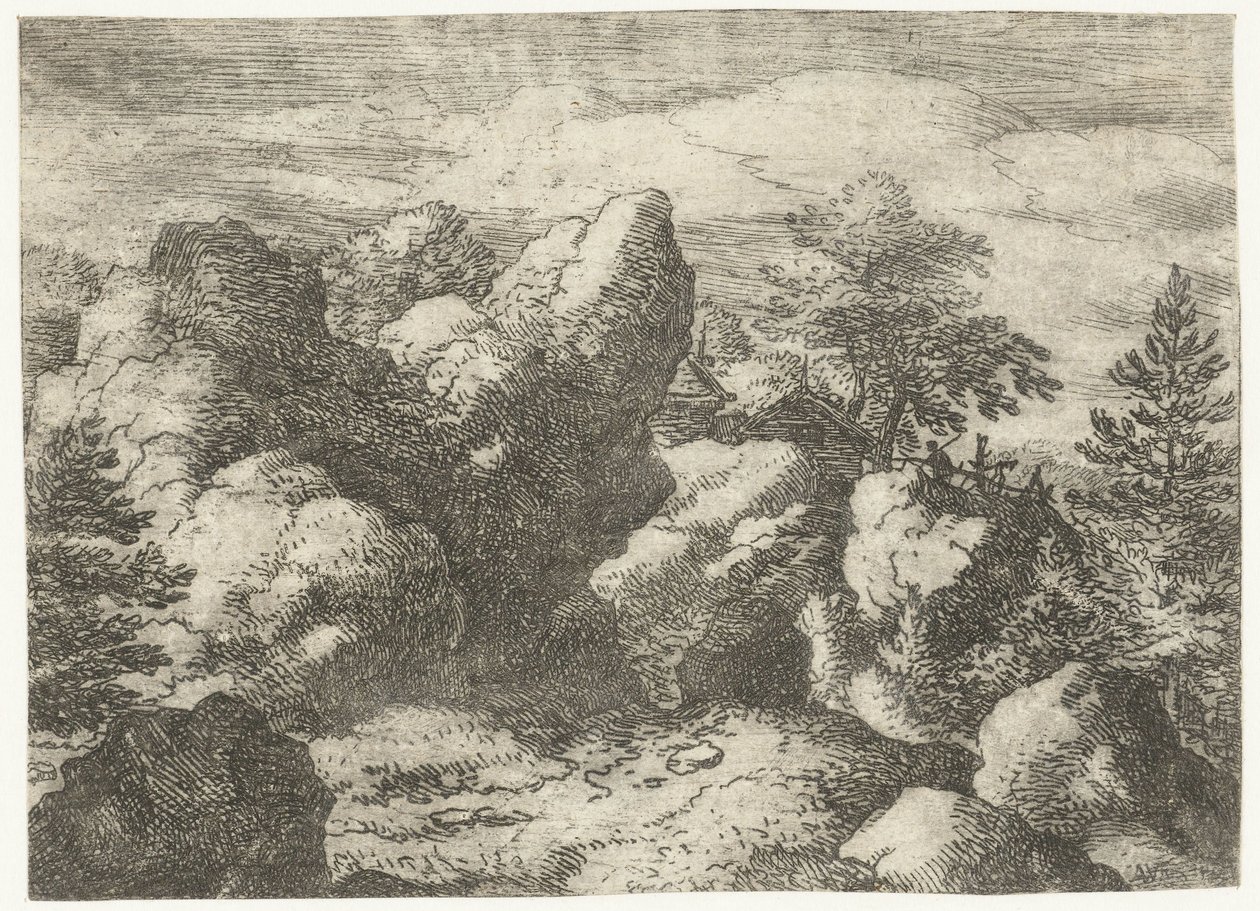 Rotslandschap(Rotslandschap De spitse rotsen)Allaert van Everdingen(print maker) |