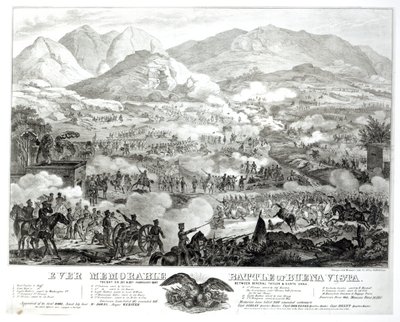 De onvergetelijke slag bij Buena Vista, gevochten op 22 en 23 februari 1847, tussen generaal Taylor en Santa Anna(Ever Memorable Battle of Buena Vista, Fought on 22nd und 23rd February 1847, Between General Taylor and Santa Anna )American School |