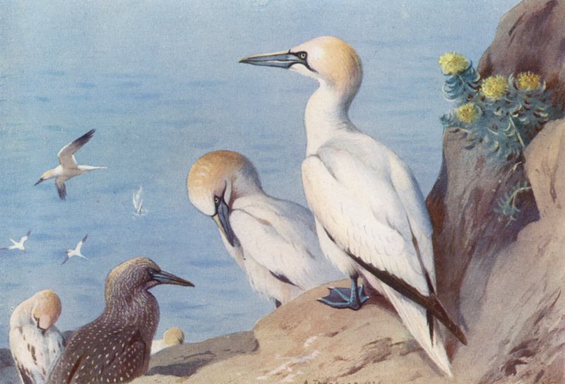 Jan-van-gent (volwassen en onvolwassen)(Gannet (adult and immature) (colour litho))Archibald Thorburn |