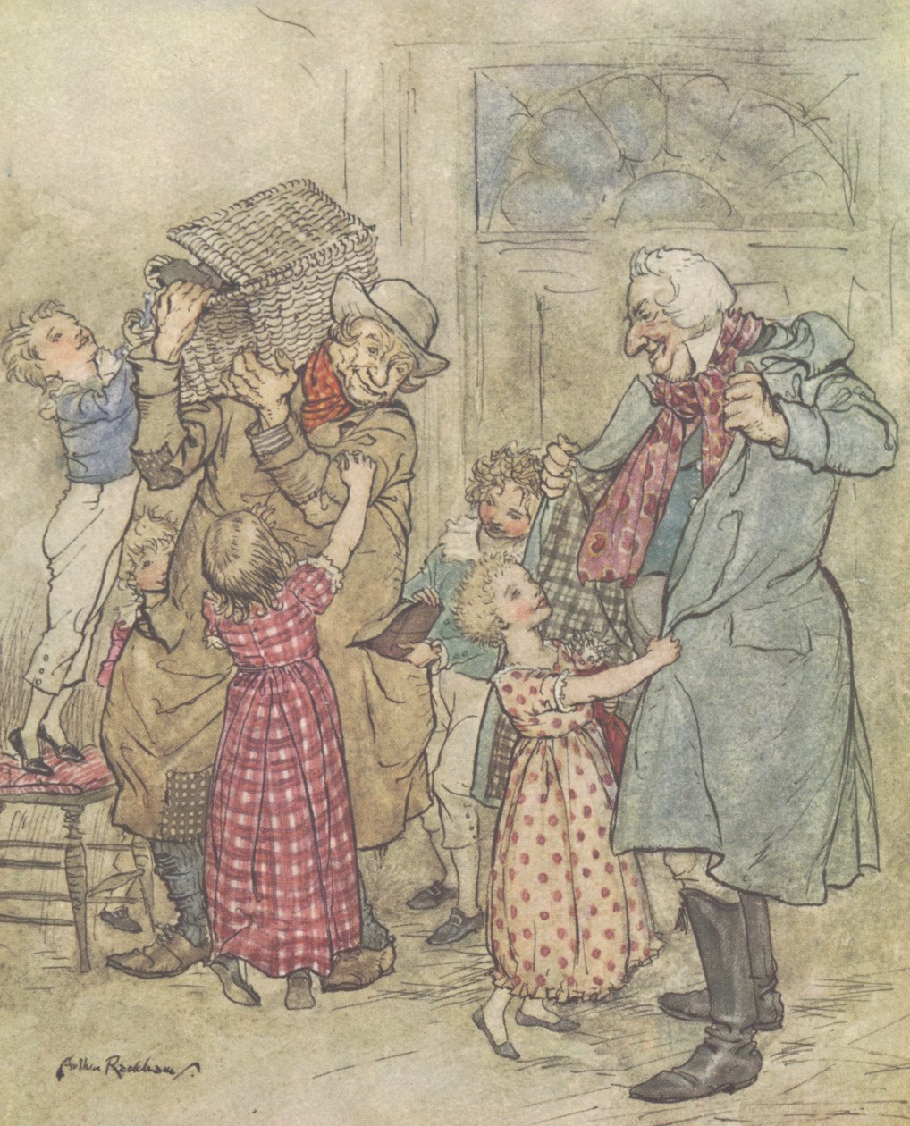 'Beladen met speelgoed en cadeaus', 1915('Laden with toys and presents', 1915 )Arthur Rackham |