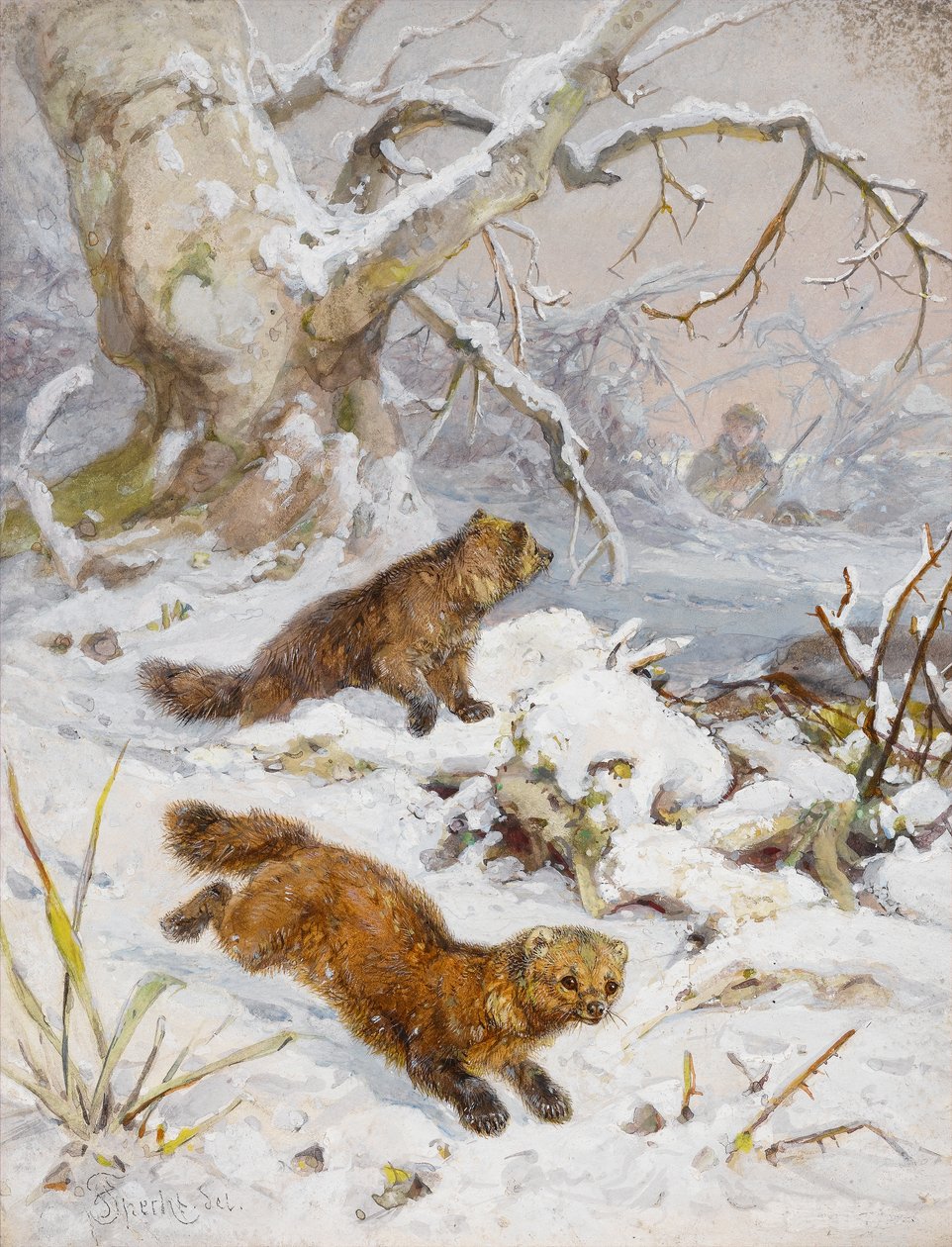 Wolverines in de sneeuw(Wolverines in the Snow (wc on paper))August Specht |