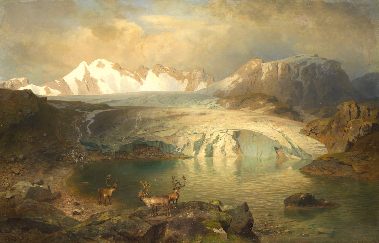 Fjordlandschap met gletsjer en rendieren(Fjordlandschaft mit Gletscher und Rentieren)August Wilhelm Leu |
