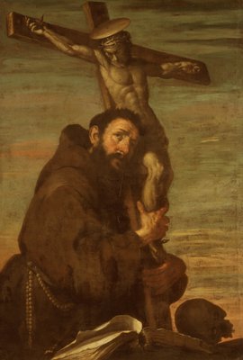 St. Franciscus van Assisi omarmt een kruisbeeld, ca. 1600-1640(St Francis of Assisi embracing a crucifix, c1600-1640. )Bernardo Strozzi |
