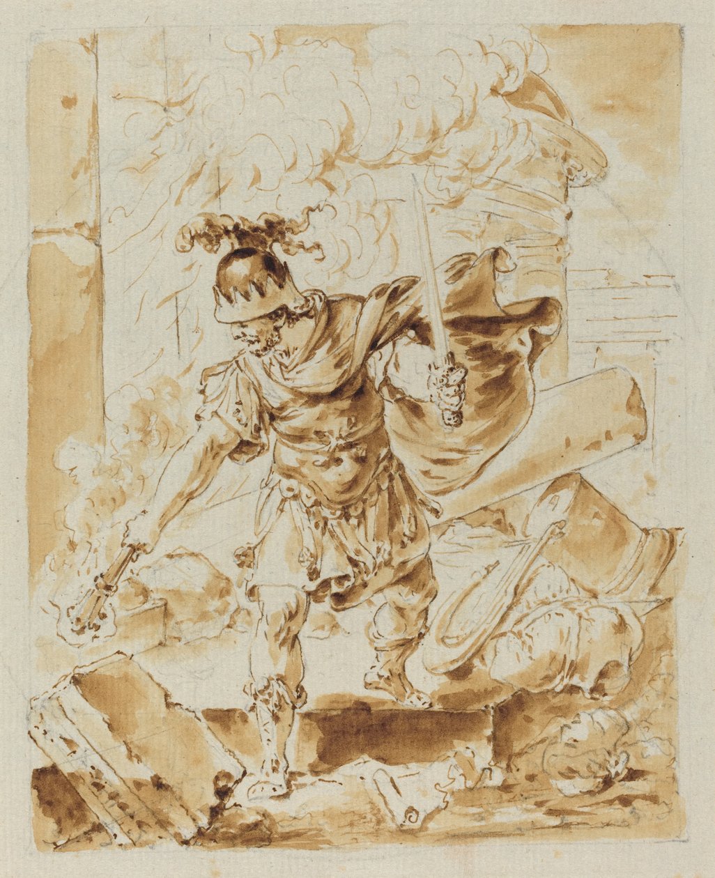 pen and brown ink with brown wash over graphite on laid paper