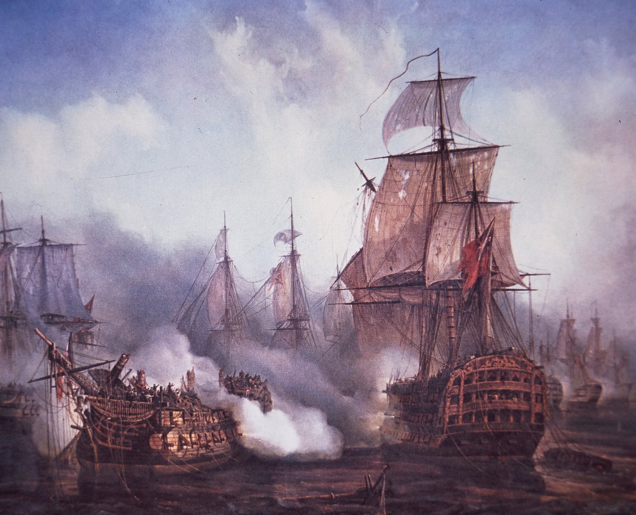 Slag bij Trafalgar in 1805(Battle of Trafalgar in 1805 (colour litho))British School |