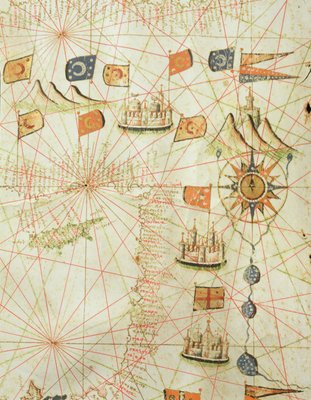 De kust van Turkije en Cyprus, uit een nautische atlas van de Middellandse Zee en het Midden-Oosten(The Coast of Turkey and Cyprus, from a nautical atlas of the Mediterranean and Middle East (ink on vellum))Calopodio da Candia |