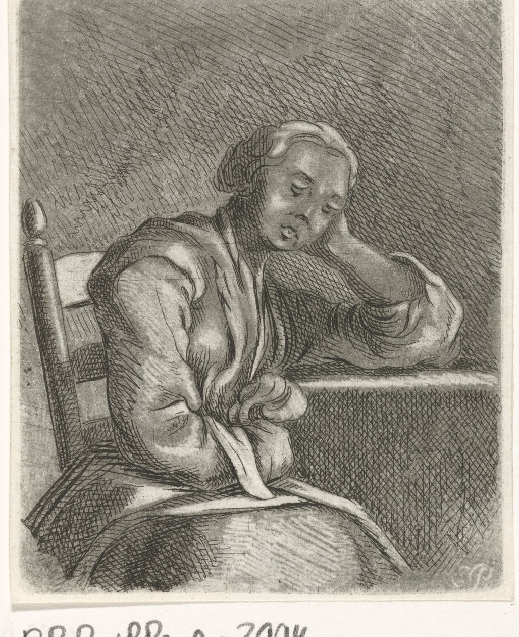 Slapend meisje aan tafel(Sleeping Girl at Table)Caspar Jacobsz. Philips(print maker) |
