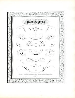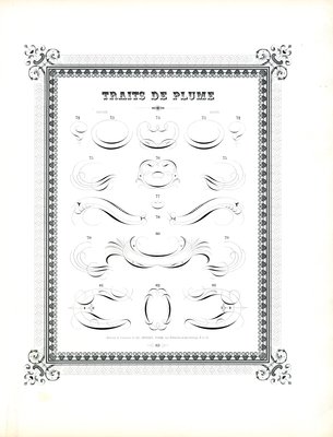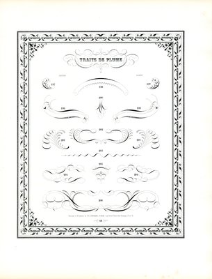 Kalligrafische pennenvlaaien met bloemenrand (print)(Calligraphic Pen Flourishes with Floral Border (print))Charles Derriey |
