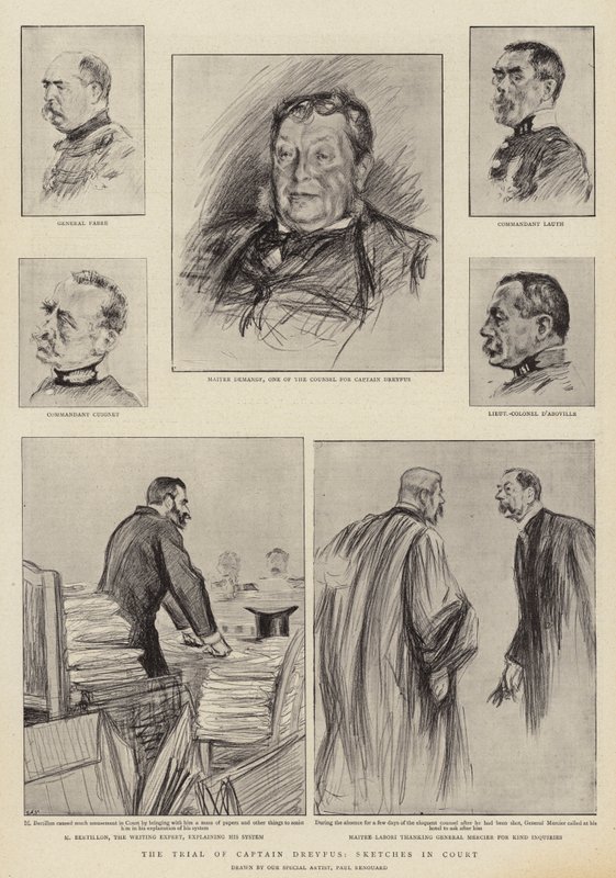 Het Proces van Kapitein Dreyfus in Rennes, Schetsen in de Rechtbank(The Trial of Captain Dreyfus at Rennes, Sketches in Court )Charles Paul Renouard |