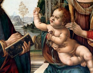 Crevole Madonna: Detail van het Kind(Crevole Madonna: Detail of the Child - tempera and gold on panel)Duccio di Buoninsegna |
