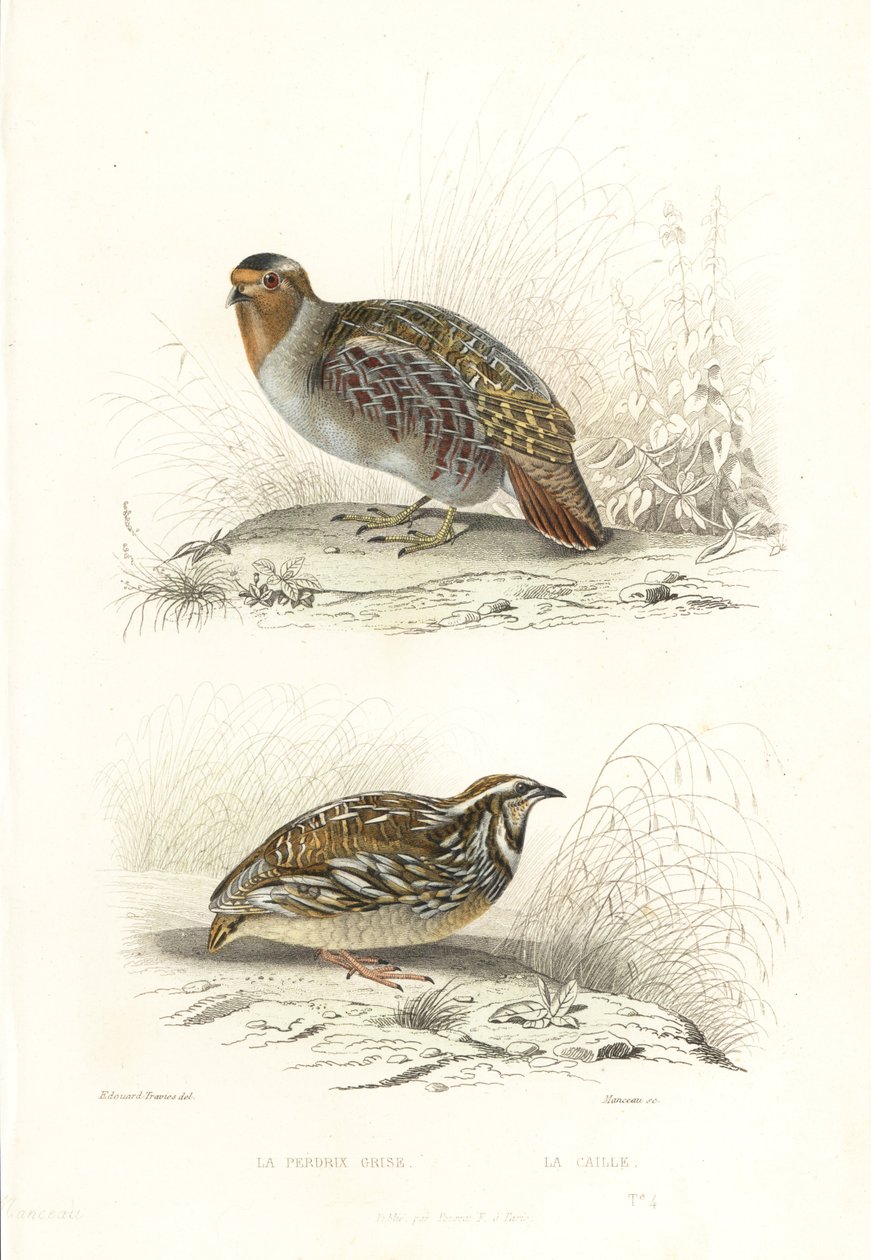 Grijze patrijs en gewone kwartel(Grey partridge and common quail.)Edouard (after) Travies |