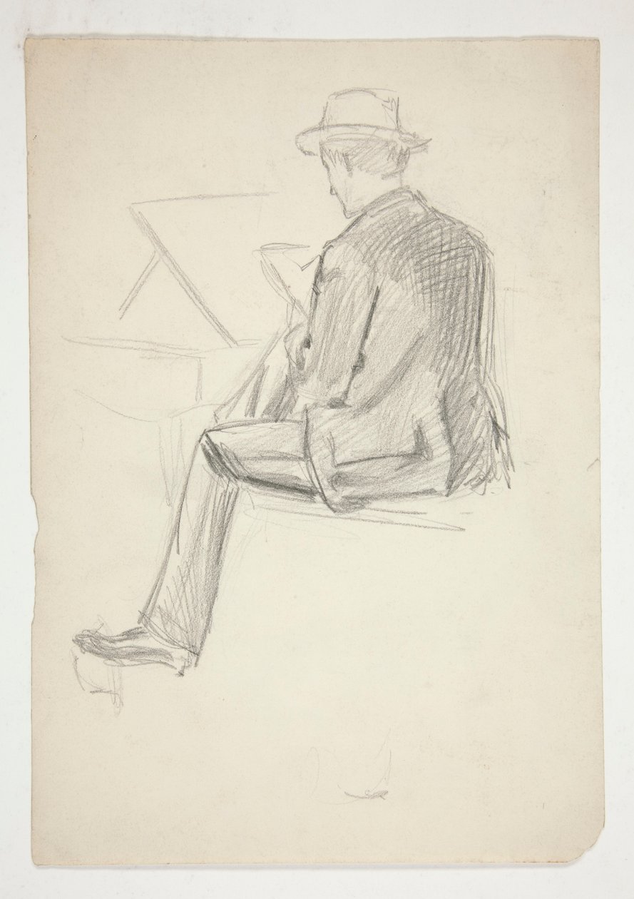 Studie van een zittende man, schetsend(Study of a man seated, sketching)Edwin Austin Abbey |