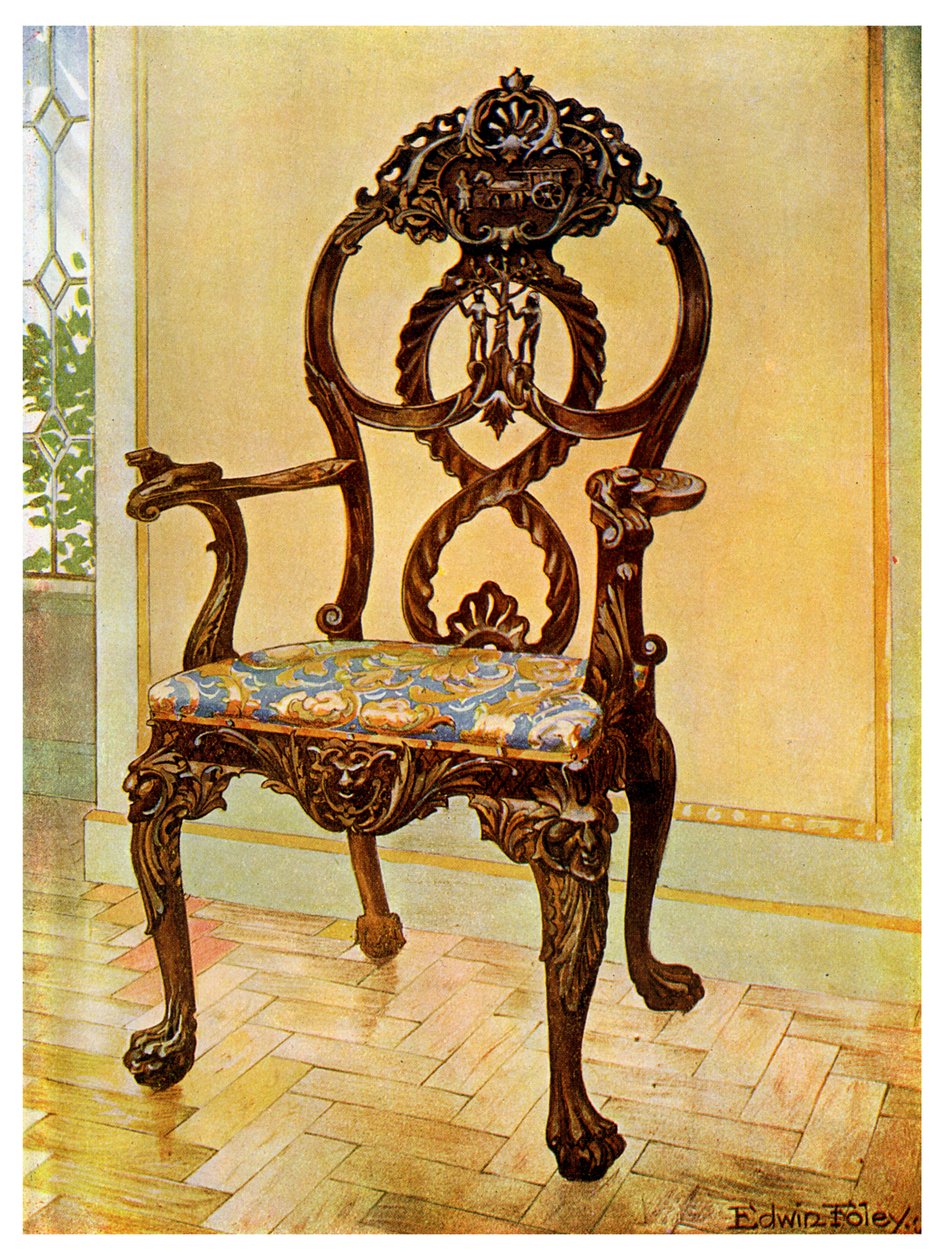 Gesneden vroege Chippendale-stoel, 1911-1912(Carved early Chippendale chairmans chair, 1911-1912.)Edwin Foley |