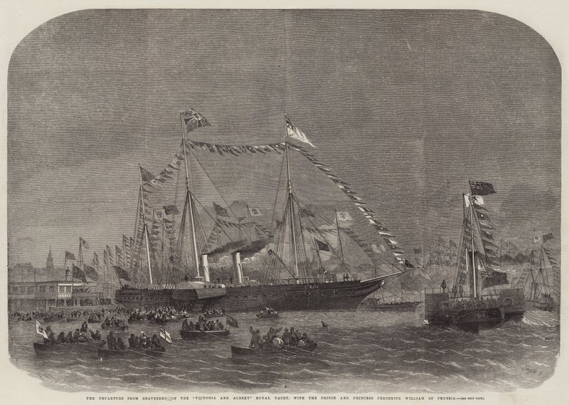 Het Vertrek uit Gravesend van het Koninklijk Jacht Victoria en Albert, met de Prins en Prinses Frederick William van Pruisen(The Departure from Gravesend of the Victoria and Albert Royal Yacht, with the Prince and Princess Frederick William of Prussia )Edwin Weedon |