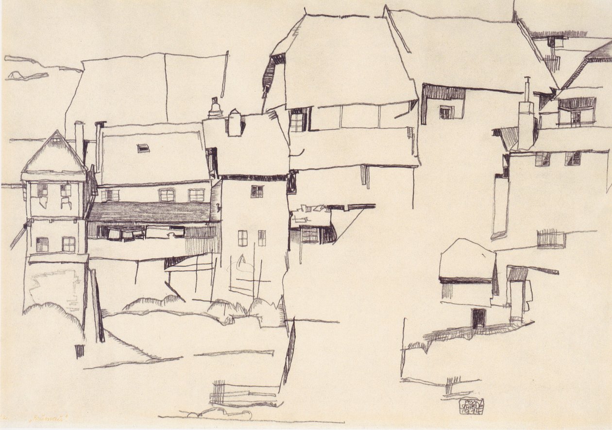 Oude huizen in Krumau(Alte Häuser in Krumau)Egon Schiele |