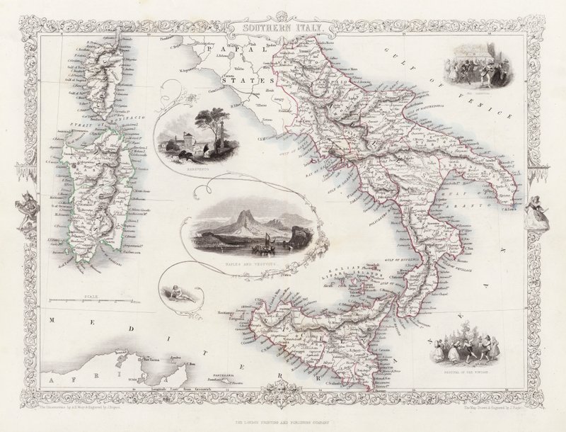 Kaart van Zuid-Italië(Map of Southern Italy (engraving))English School |