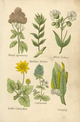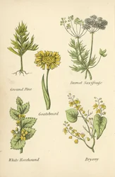 (Good King Henry, Henbane, Black Horehound, Haresfoot, Least Houseleek, Honeywort (colour litho))