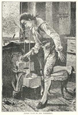 James Watt in zijn werkplaats (gravure)(James Watt in his Workshop (engraving))English School |