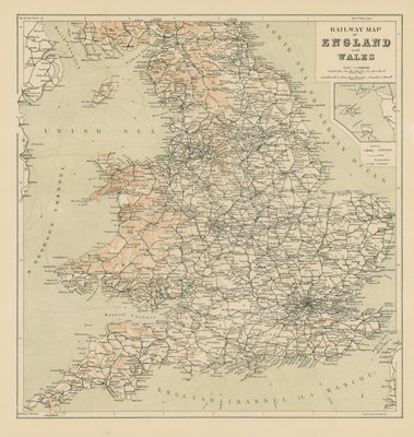 Spoorwegkaart van Engeland en Wales (litho)(Railway Map of England and Wales (litho))English School |