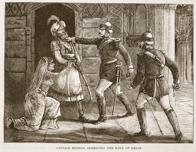 Kapitein Hodson arresteert de koning van Delhi (gravure)(Captain Hodson arresting the king of Delhi (engraving))English School |