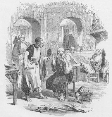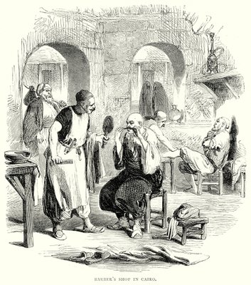 Kapperszaak in Caïro (gravure)(Barber's Shop in Cairo (engraving))English School |