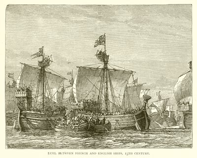 Duel tussen Franse en Engelse schepen (gravure)(Duel between French and English Ships (engraving))English School |