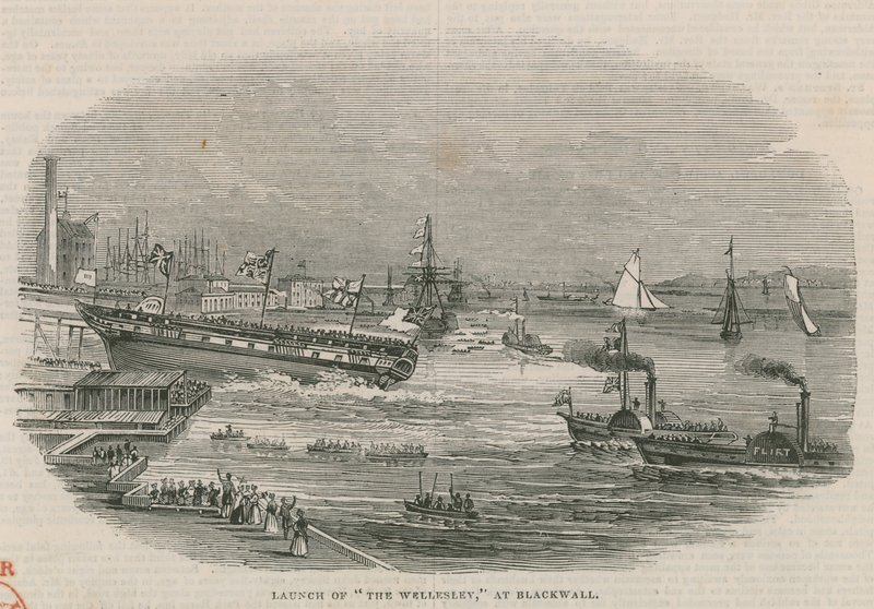 Te water laten van de Wellesley in Blackwall(Launch of The Wellesley at Blackwall )English School |