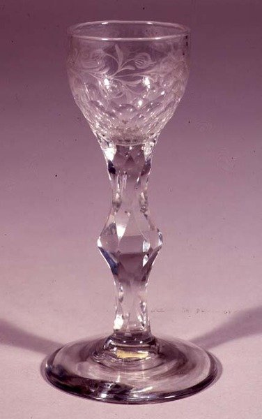 Gefacetteerd wijnglas met kelkbeker(Faceted wine glass with cup bowl, 1790 (glass))English School |