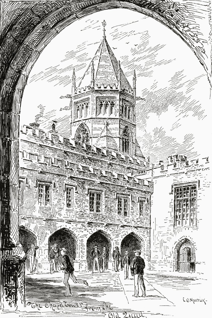 Rugby School, de kapeltoren vanuit de Oude Quad, uit 'The English Illustrated Magazine', 1891-92(Rugby School, the Chapel Tower from the Old Quad, from 'The English Illustrated Magazine', 1891-92 )English School |