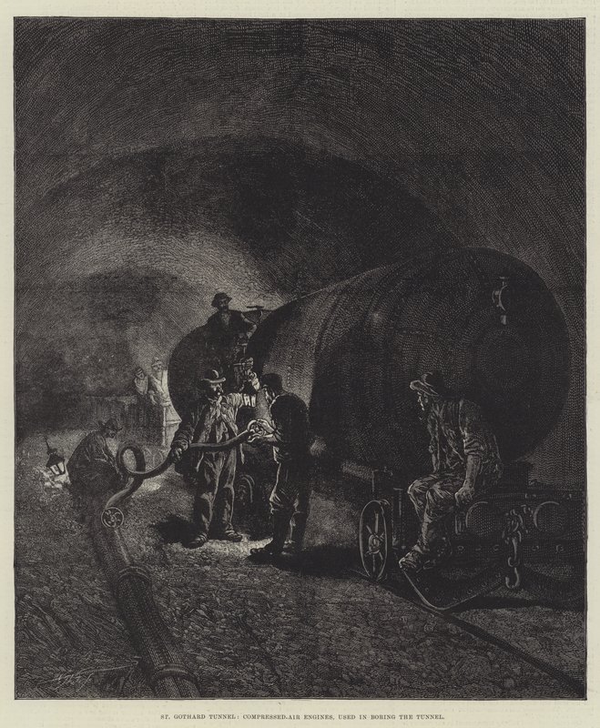 De St. Gotthard-tunnel(The St Gothard Tunnel (engraving))English School |