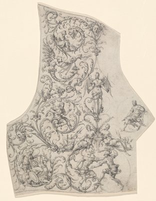 De rugplaat van een paradepantser, c.1557 (pentekening)(The Backplate of a Suit of Parade Armor, c.1557 (pen and ink drawing))Etienne Delaune |