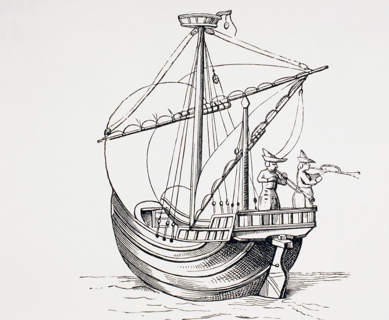 Vijftiende-eeuws zeilschip, ca. 1880(Fifteenth Century Sailing Ship, c.1880 )European School |