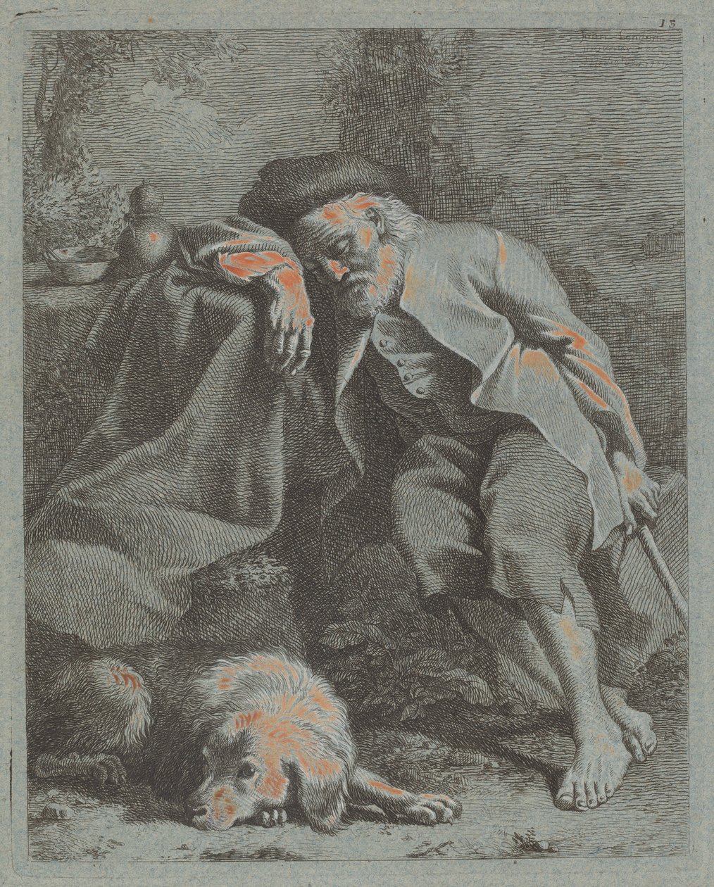 Slapende Oude Man met Hond(Sleeping Old Man with Dog)Francesco Londonio |