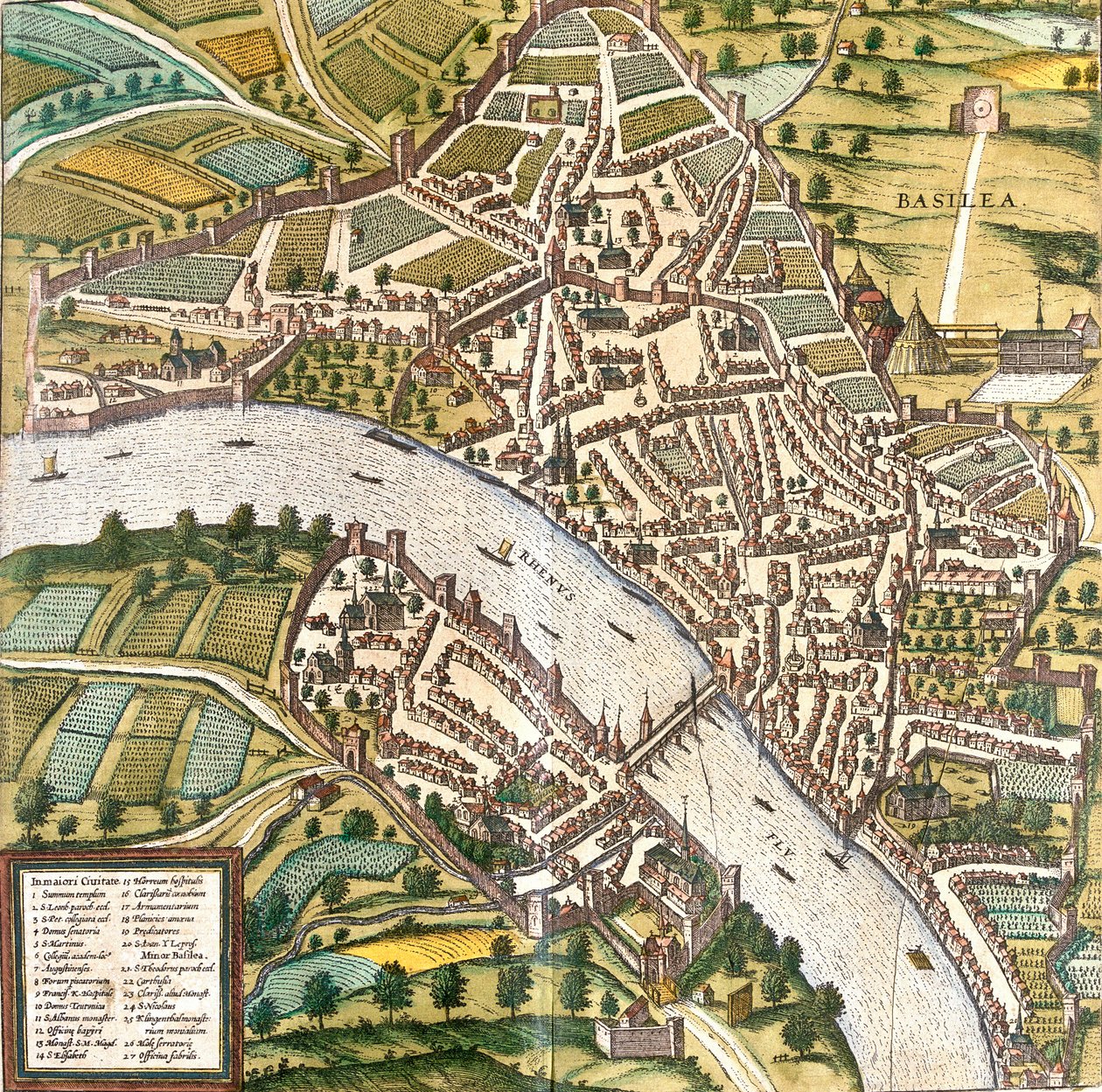 Plan van Bazel, Zwitserland(Plan of Bale (Basilea), Switzerland (etching)Franz Hogenberg |