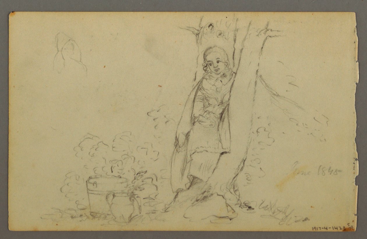 Tekening, Boerderijgebouwen in de verte, 1844(Drawing, Distant farm buildings, 1844)Frederic Edwin Church |