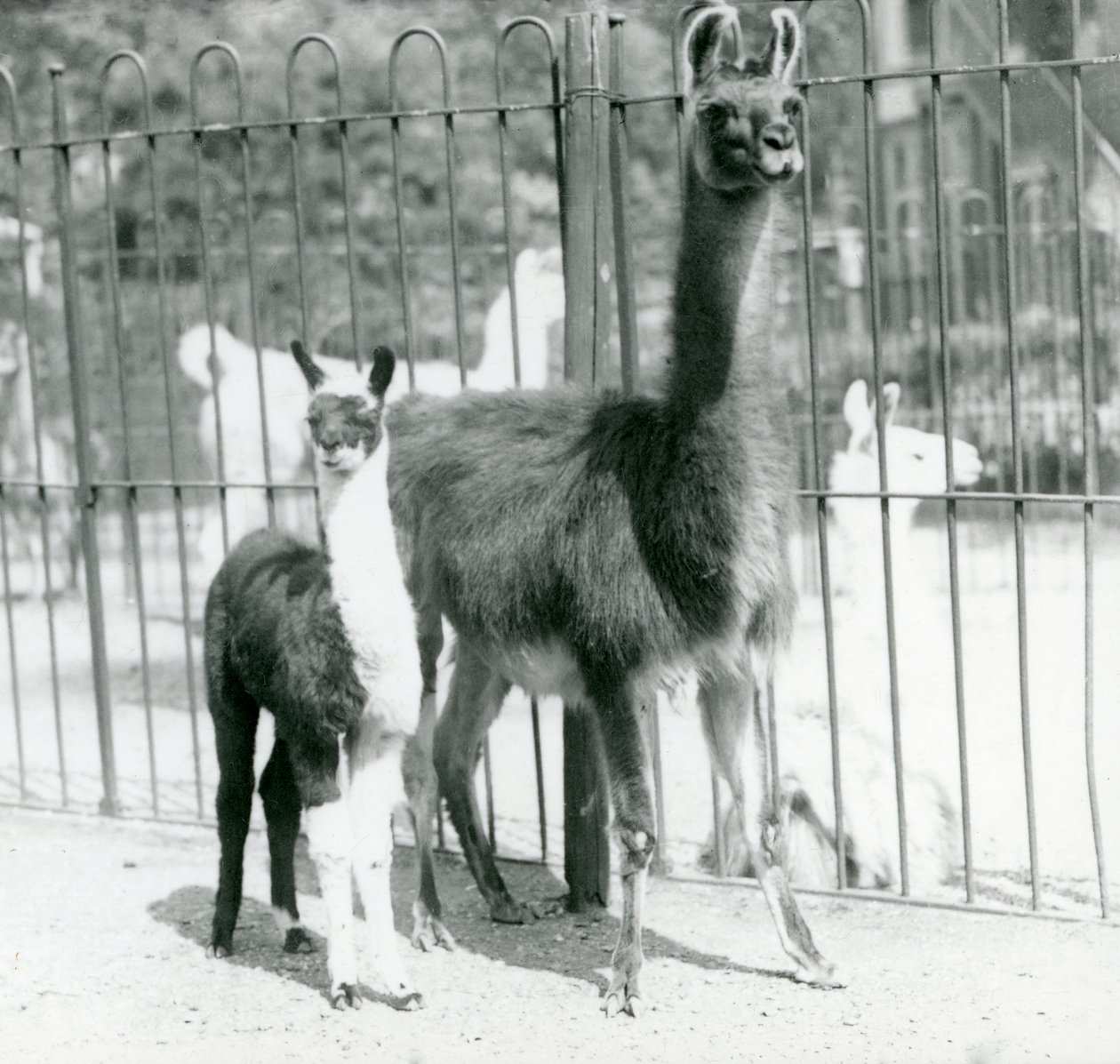 Een baby lama of cria met zijn moeder in London Zoo, augustus 1923(A baby Llama or Cria with its Mother at London Zoo, August 1923 (bw photo))Frederick William Bond |