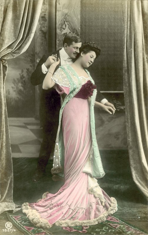 Man maakt avances bij modieuze dame(Man making advances on fashionable lady )French Photographer |