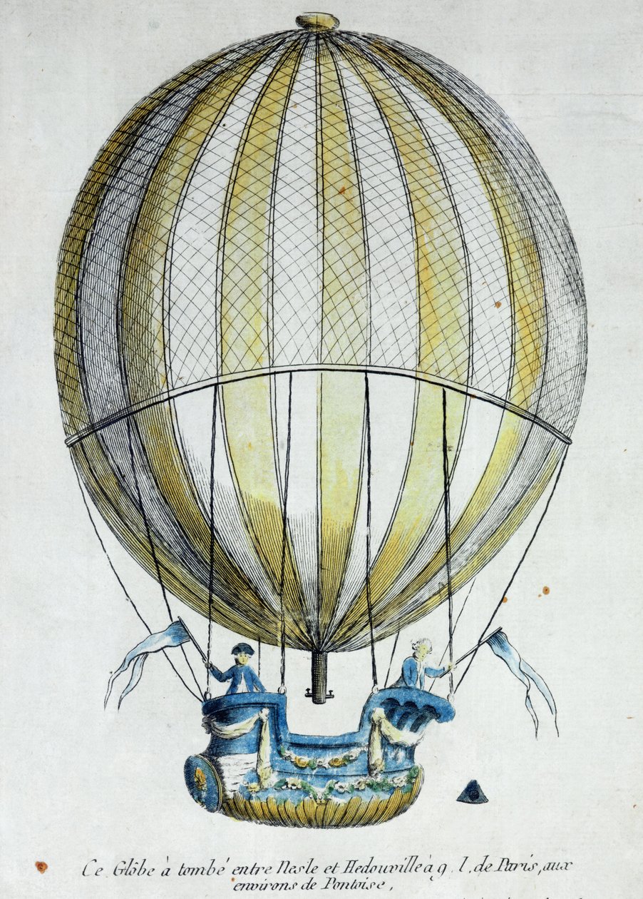 De ballon van Jacques Charles en Nicholas Robert gebruikt in hun vlucht vanuit de Jardin des Tuileries, 1 december 1783(The Balloon of Jacques Charles (1746-1823) and Nicholas Robert (1761-1828) used in their flight from the Jardin des Tuileries, 1st December, 1783 )French School |