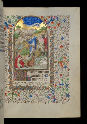 Aankondiging aan de herders, Add Ms 18850 f.70v Getijdenboek (De Bedford Hours) c.1410-30(Announcement to the Shepherds, Add Ms 18850 f.70v Book of Hours (The Bedford Hours) c.1410-30 (ink, colour & gold on vellum))French School |