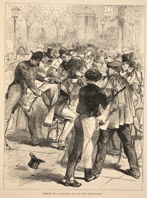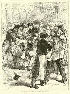 Arrestatie van een Pruisische spion op de Boulevards, september 1870, illustratie uit 'Cassell's History of the War between France and Germany(Arrest of a Prussian spy on the Boulevards, September 1870, illustration from 'Cassell's History of the War between France and Germany)French School |