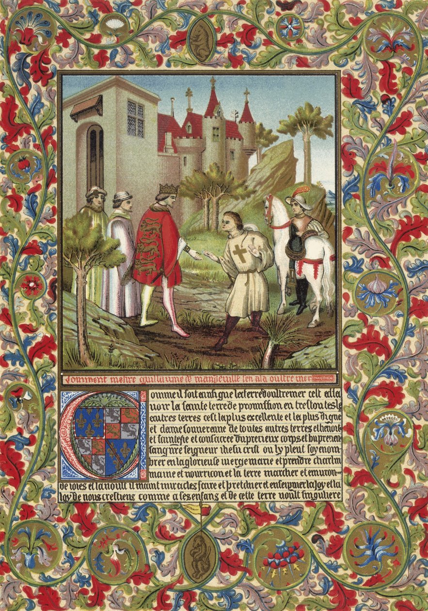 Guillaume de Mandeville, 3e graaf van Essex, ontmoet Richard Leeuwenhart(Guillaume de Mandeville, 3rd Earl of Essex, meets Richard the Lionheart (chromolithograph))French School |