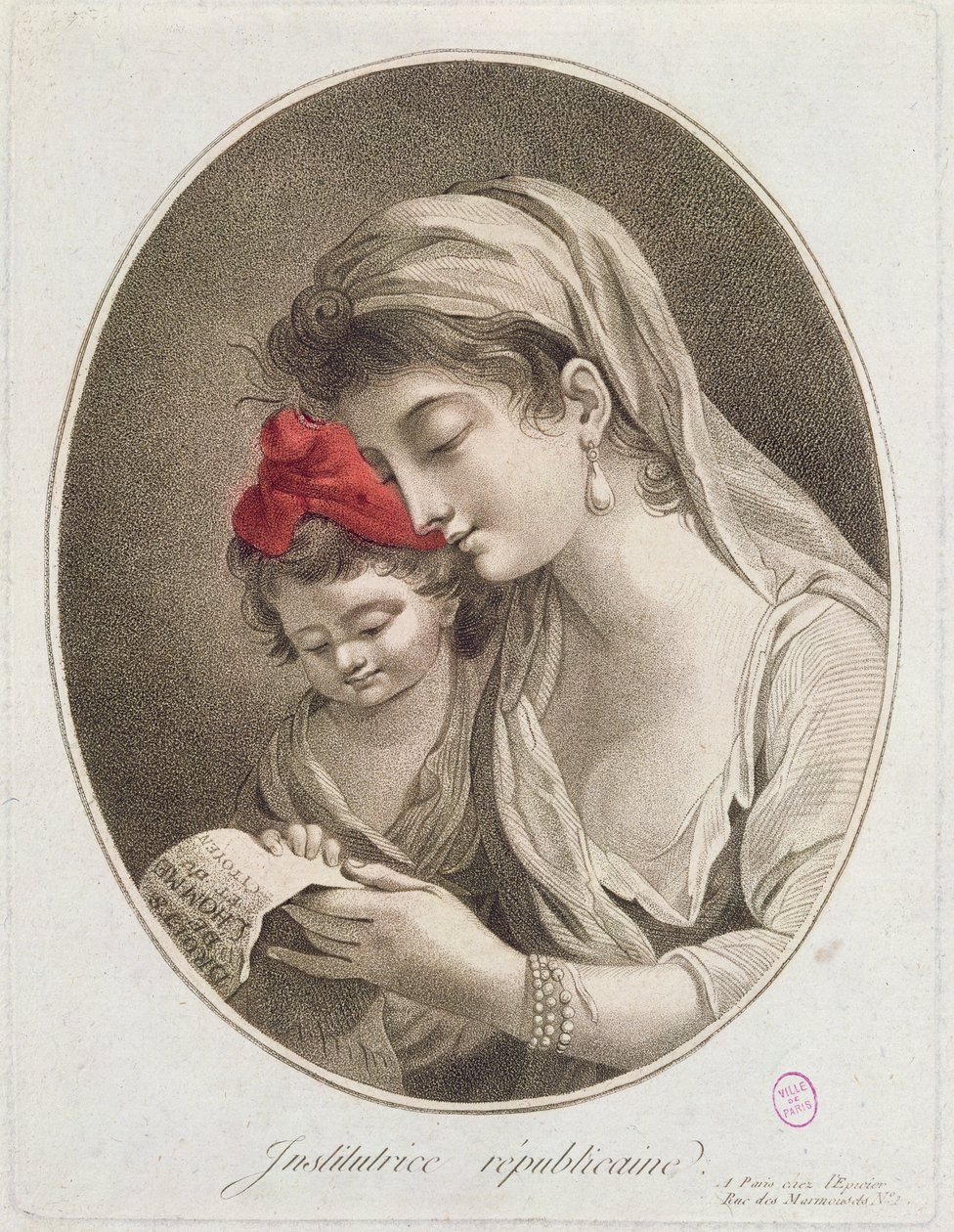 Institutrice Republicaine, ca. 1789(Institutrice Republicaine. c.1789 (colour engraving))French School |