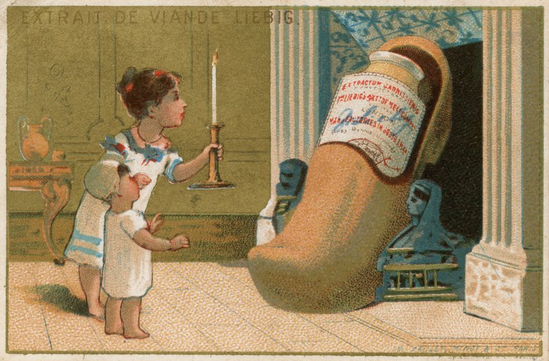 Kinderen onderzoeken schoen met Liebig-extract(Children examining shoe containing Liebig extract )French School |