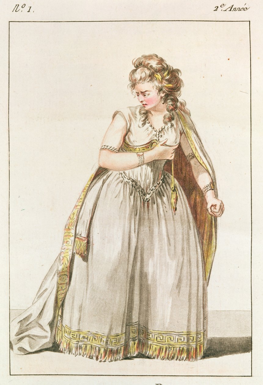 Kostuum van Madame Vestris in de rol van Pauline in Polyeucte, Act IV, 1786(Costume of Madame Vestris in the role of Pauline in Polyeucte, Act IV, 1786 )French School |