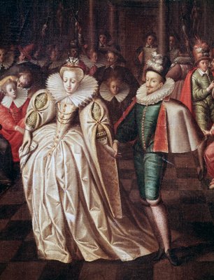 Het echtpaar, hertog van Joyeuse en Margaretha van Lotharingen, detail van bal gegeven op 24 september(The married couple, Duc de Joyeuse and Margaret of Lorraine, detail of ball given on September 24)French School |