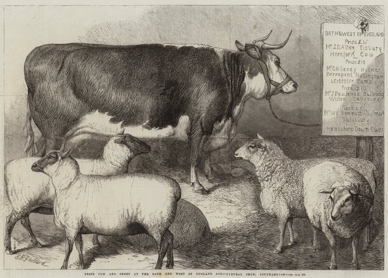 Prijs Koe en Schaap op de Bath en West of England Landbouwshow, Southampton(Prize Cow and Sheep at the Bath and West of England Agricultural Show, Southampton )George Bouverie Goddard |