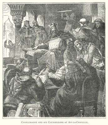 De Keizer Karel de Grote omringd door geleerden en leden van de geestelijkheid(The Emperor Charlemagne surrounded by scholars and members of the clergy (engraving))German School |